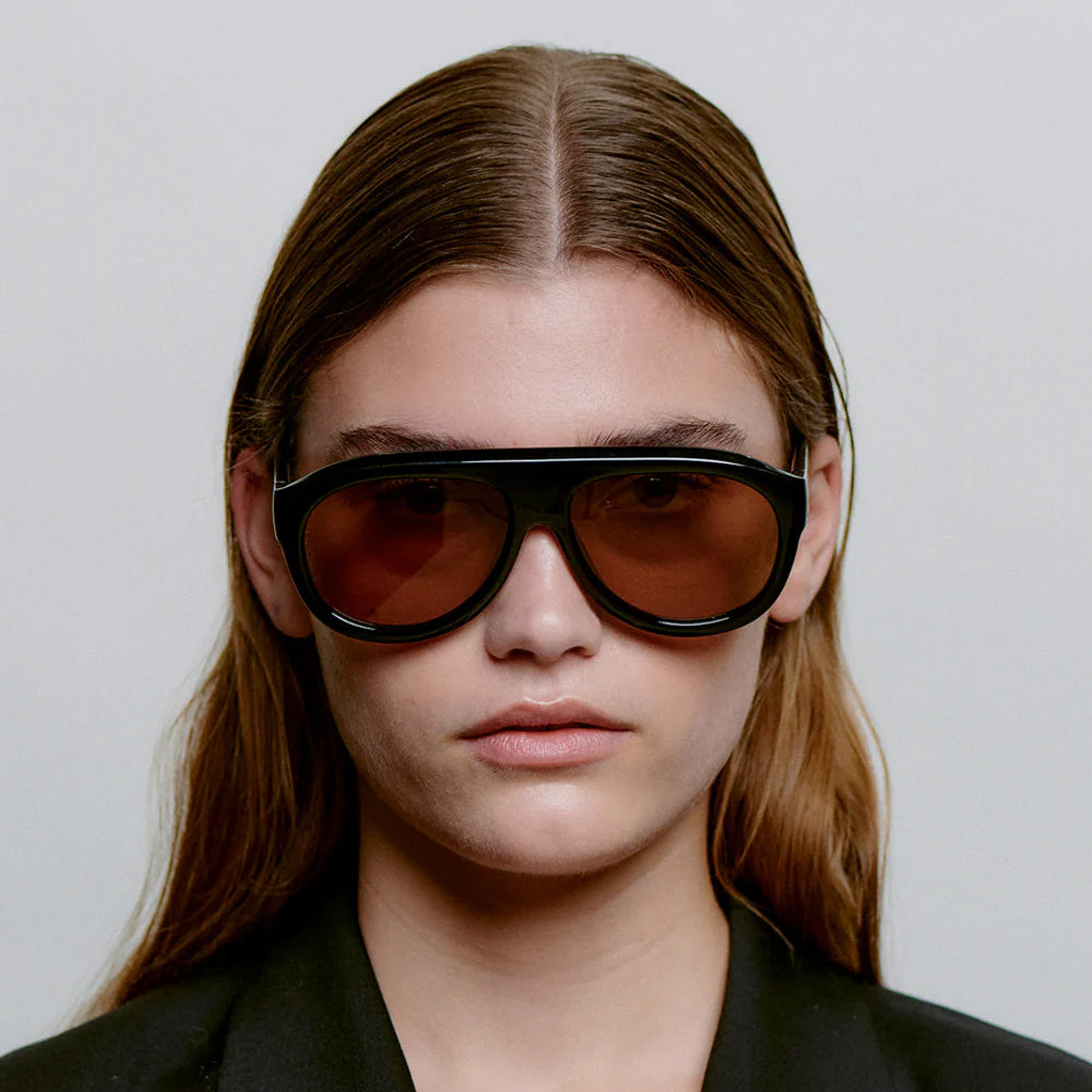 Rio Black fra A. Kjærbede er en moderne nyfortolkning af den klassiske aviator-solbrille. Den markante og skulpturelle ramme giver modellen et stærkt og fashion-forward udtryk, mens den store silhuet skaber et iøjnefaldende look med masser af attitude.