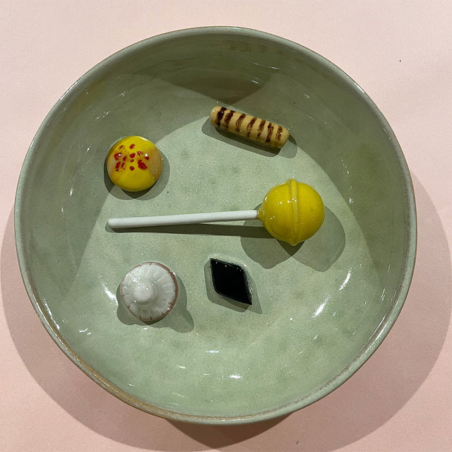 Tilføj et kreativt og legende element til din boligindretning med vores keramik slikskål med fastgjort keramik slik fra Julie Ebens. Denne unikke slikskål er både perfekt til fredags-slik og en dekorativ samtalestarter, perfekt til at give dit hjem et personligt præg. Slikskålen er en unika, og lige præcis denne har en lækker lakridspibe og det fine slik-kirsebær.