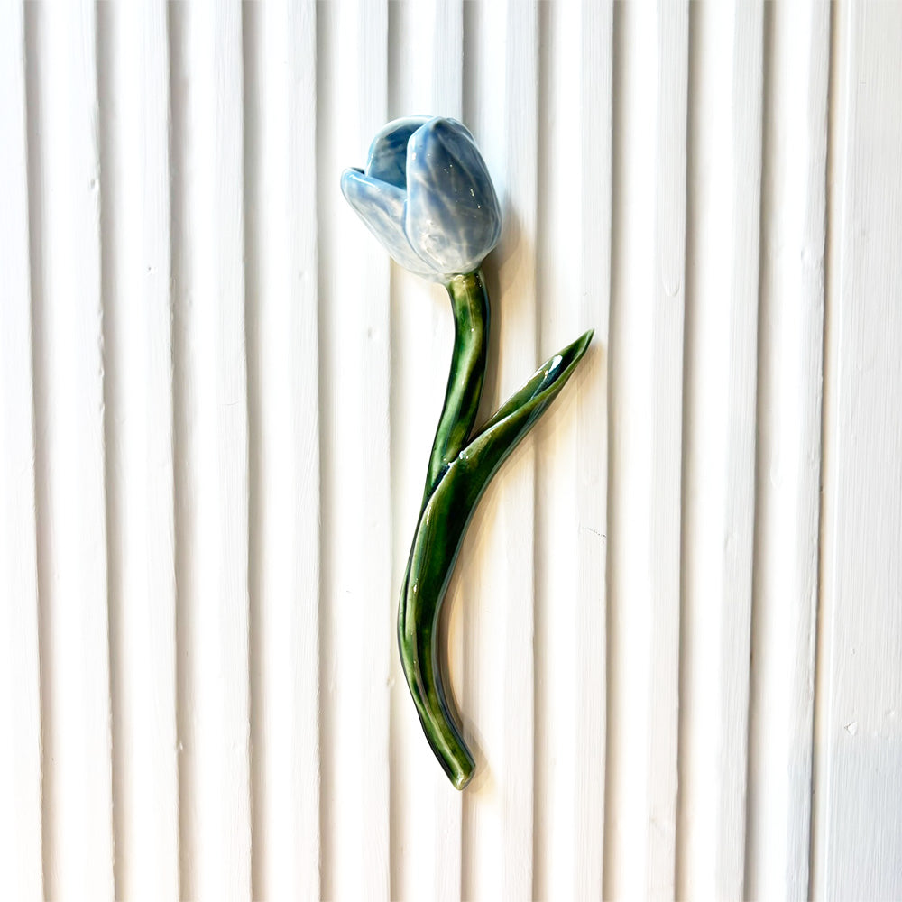 Leder du efter noget særligt til dit hjem? En håndlavet keramik tulipan, i lyseblå, til væggen er den perfekte løsning.