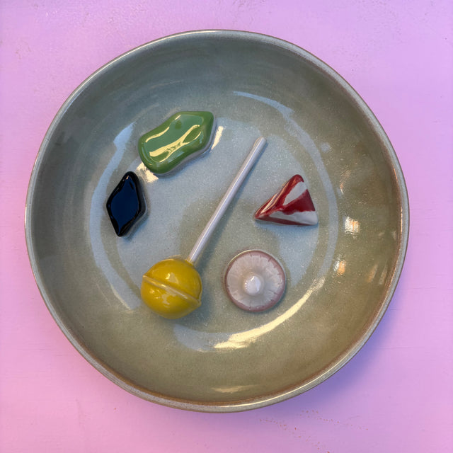 Tilføj et kreativt og legende element til din boligindretning med vores keramik slikskål med fastgjort keramik slik fra Julie Ebens. Denne unikke slikskål er både perfekt til fredags-slik og en dekorativ samtalestarter, perfekt til at give dit hjem et personligt præg. Slikskålen er en unika, og lige præcis denne er bl.a. udsmykket med en gul slikkepind og en grøn skumfrø.