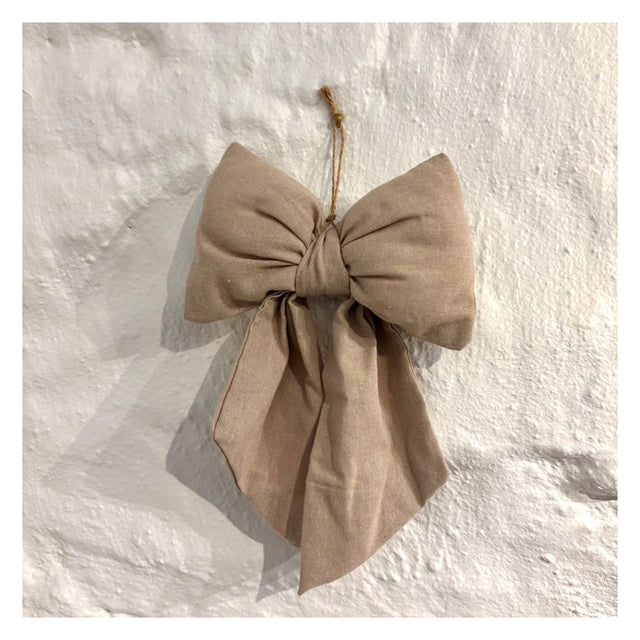 Den beige farve giver et varmt og naturligt look. Sløjfen kan bruges som pynt på juletræet, til gaveindpakning, på adventskransen eller som dekorativ detalje i vindueskarmen.
