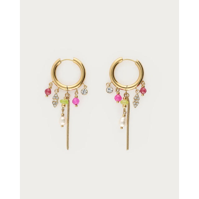 Hoops med forskellige Perlevedhæng fra My Jewellery er et par stilfulde øreringe med et farverigt og legende twist. De unikke perlevedhæng giver et feminint og moderne udtryk, der gør dem perfekte til både hverdagslooks og festlige anledninger.