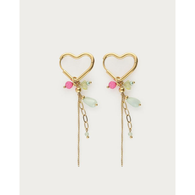Forelsk dig i de elegante hjerte-hoops fra My Jewellery. De smukke grønne sten og fine vedhæng giver et unikt og iøjnefaldende udtryk – perfekte til at tilføje farve, charme og personlighed til dit look.