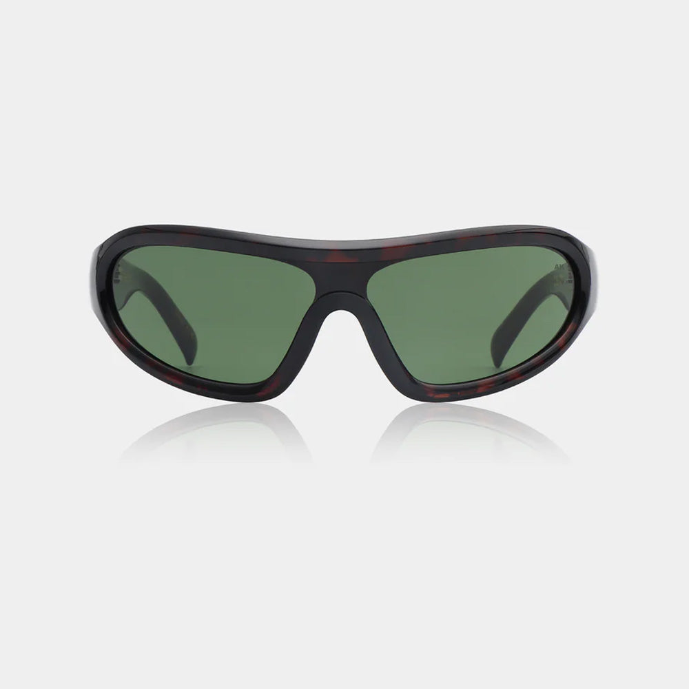 Devon – Demi Tortoise fra A. Kjærbede er en markant wraparound-solbrille med et sporty retro-udtryk og masser af attitude. Det buede design følger ansigtets form og skaber et dynamisk look, der kombinerer mode og funktion i ét stærkt statement.